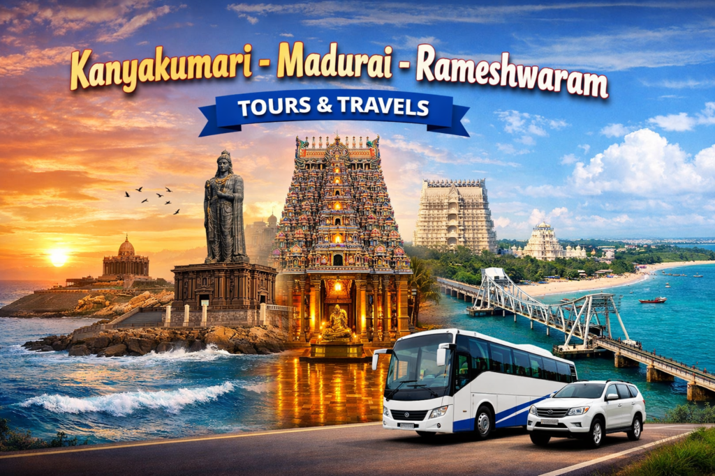 Looking for the perfect Madurai to Rameshwaram trip or a complete Rameshwaram Kanyakumari tour package? Welcome to Kumari Travels, your trusted partner for comfortable, affordable, and well-planned South India tours. We specialize in customized pilgrim tours, family vacation packages, and Kerala–Tamil Nadu combined tour plans.